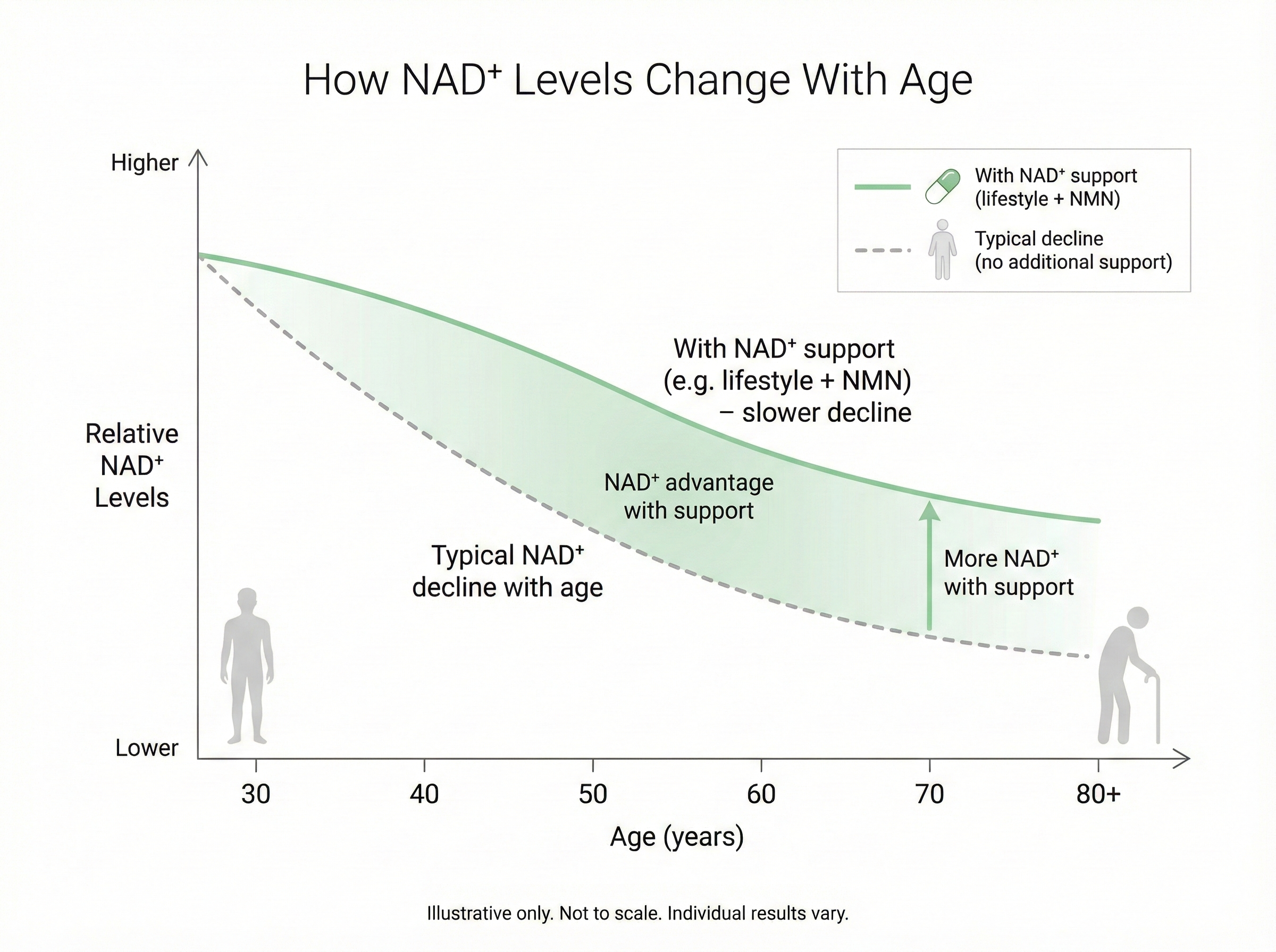 Long-term use supports healthy NAD+ pathways, mitochondrial function, and cellular renewal. This helps you maintain consistent energy and long-term performance